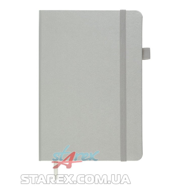- Твердая обложка из искусственной кожи с продольной резинкой для фиксации блокнота в закрытом состоянии