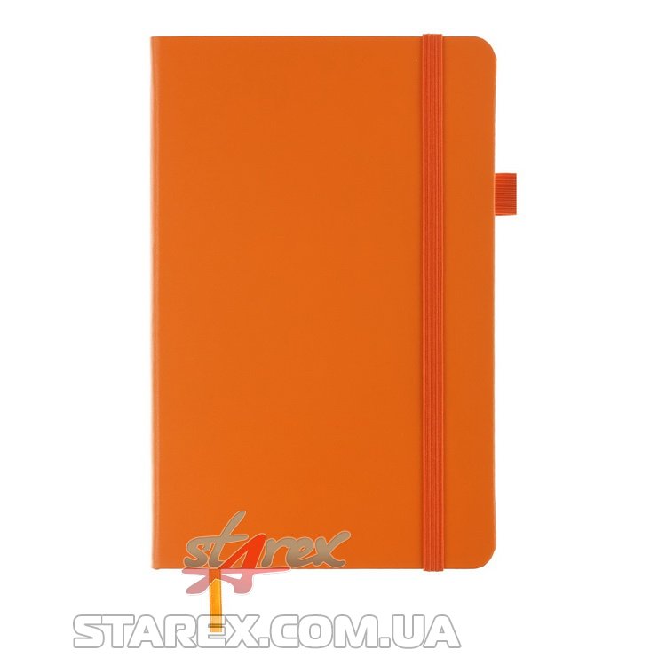- Твердая обложка из искусственной кожи с продольной резинкой для фиксации блокнота в закрытом состоянии