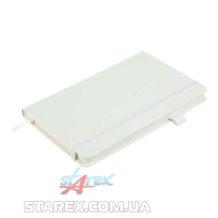 - Твердая обложка из искусственной кожи с продольной резинкой для фиксации блокнота в закрытом состоянии