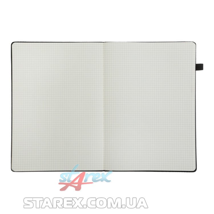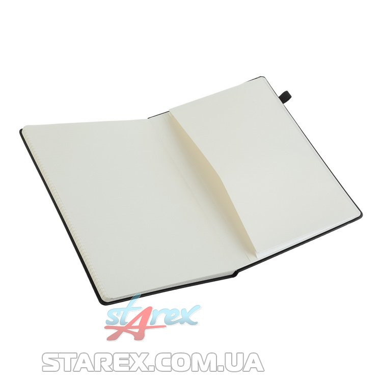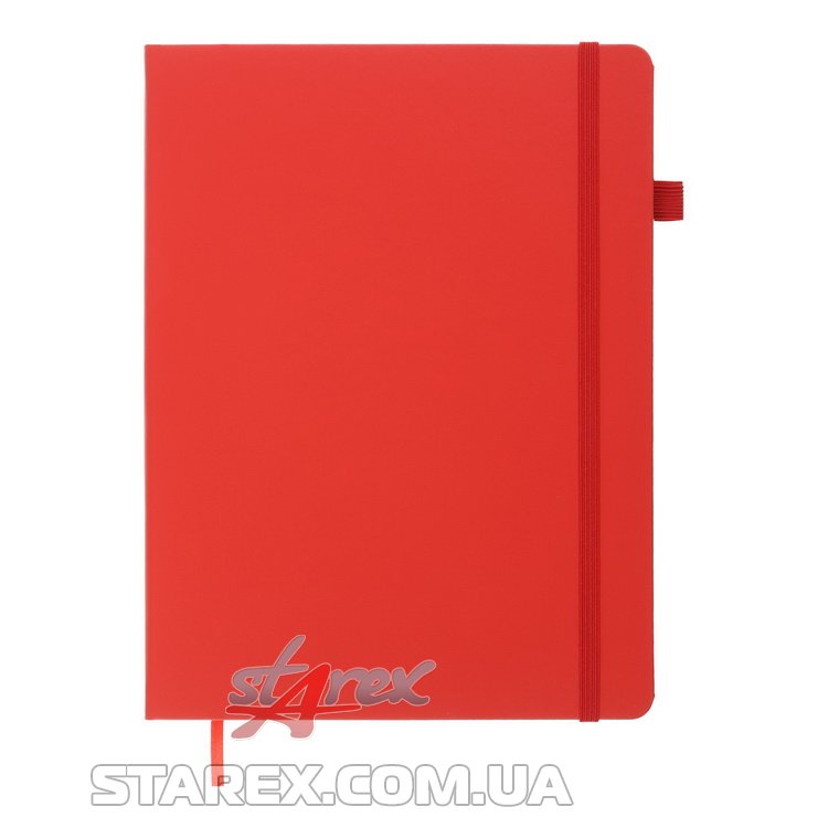 - Твердая обложка из искусственной кожи с продольной резинкой для фиксации блокнота в закрытом состоянии