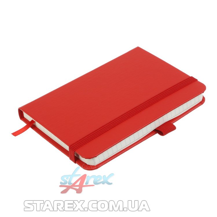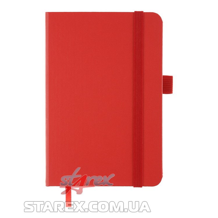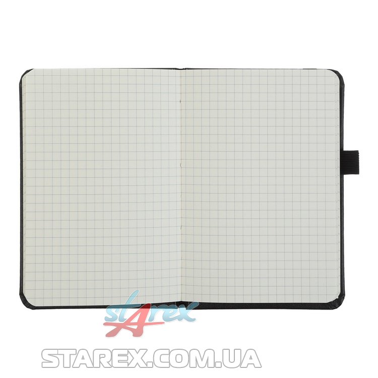 - Твердая обложка из искусственной кожи с продольной резинкой для фиксации блокнота в закрытом состоянии