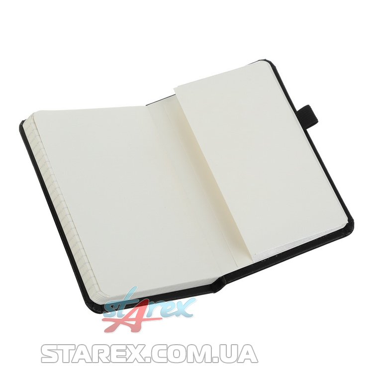 - Твердая обложка из искусственной кожи с продольной резинкой для фиксации блокнота в закрытом состоянии
