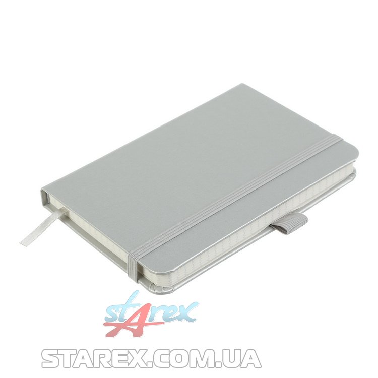 - Твердая обложка из искусственной кожи с продольной резинкой для фиксации блокнота в закрытом состоянии