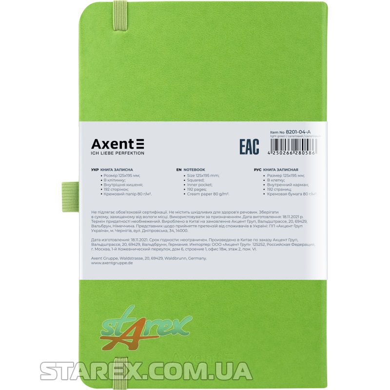 Книга записная Axent из серии Partner предназначена для тех, кто ценит классический деловой дизайн и максимальную функциональность. Может использоваться для записей, для планирования, в качестве недатированного ежедневника, для любых деловых и творческих задач. Записная книга Partner имеет твёрдый переплёт из винила, благодаря чему даже спустя время сохраняет аккуратный и презентабельный вид. Качественная бумага плотностью 80г/м2 благородного кремового оттенка обеспечивает комфортное письмо, хорошо впитывает чернила. Бумага в клетку, удобно делать любые записи, рисовать, чертить. Размеры клетки составляют 5х5 мм. Содержит 96 листов, формат А5- позволяет фиксировать много информации, и при этом удобно носить записную книгу с собой. Закладка позволяет быстро найти и открыть нужные страницы. Кармашек на форзаце будет надежно хранить записки, чеки, карточки и прочие важные мелочи. Петля для ручки не дает ручке потеряться и выпасть, нет необходимости носить ручку между страниц и портить внешний вид записной книги