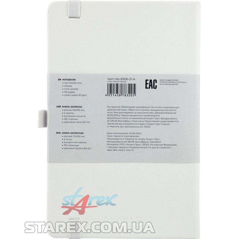 Книга записная Axent из серии Partner предназначена для тех, кто ценит классический деловой дизайн и максимальную функциональность. Может использоваться для записей, для планирования, как недатированный дневник, для любых деловых и творческих задач. Записная книжка Partner имеет твердое переплетения из винила, благодаря чему даже со временем сохраняет аккуратный и презентабельный вид. Качественная бумага плотностью 80г/м2 благородного кремового оттенка обеспечивает комфортное письмо, хорошо впитывает чернила. Бумага в точку, удобно делать любые записи, рисовать, чертить. Содержит 96 листов, формат А5- позволяет фиксировать много информации, и при этом удобно носить записную книжку с собой. Закладка позволяет быстро найти и открыть нужные страницы. Карман на форзаце будет надежно хранить заметки, чеки, карточки и другие важные мелочи. Петля для ручки не дает ручке потеряться и выпасть, нет необходимости носить ручку между страниц