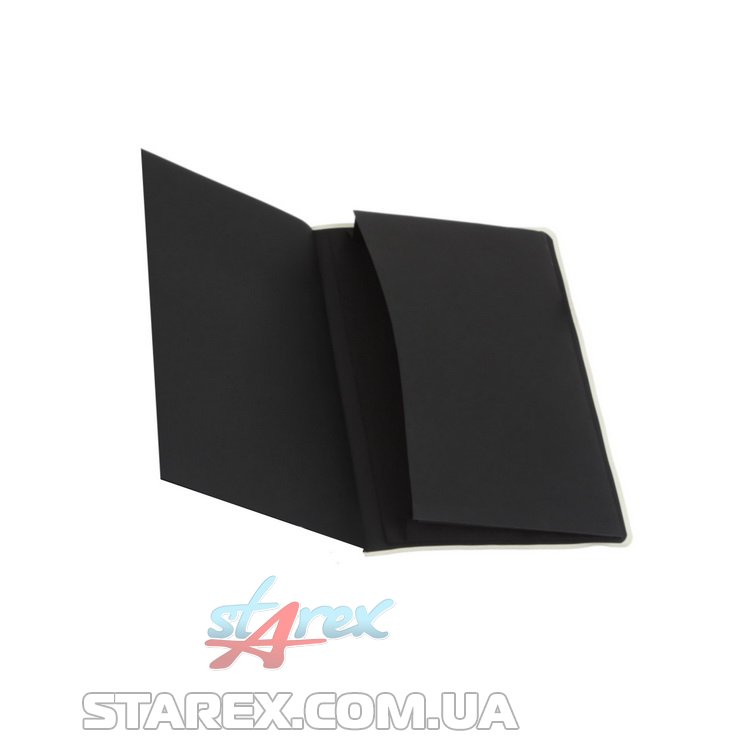 - Твердая обложка из искусственной кожи с продольной резинкой для фиксации блокнота в закрытом состоянии