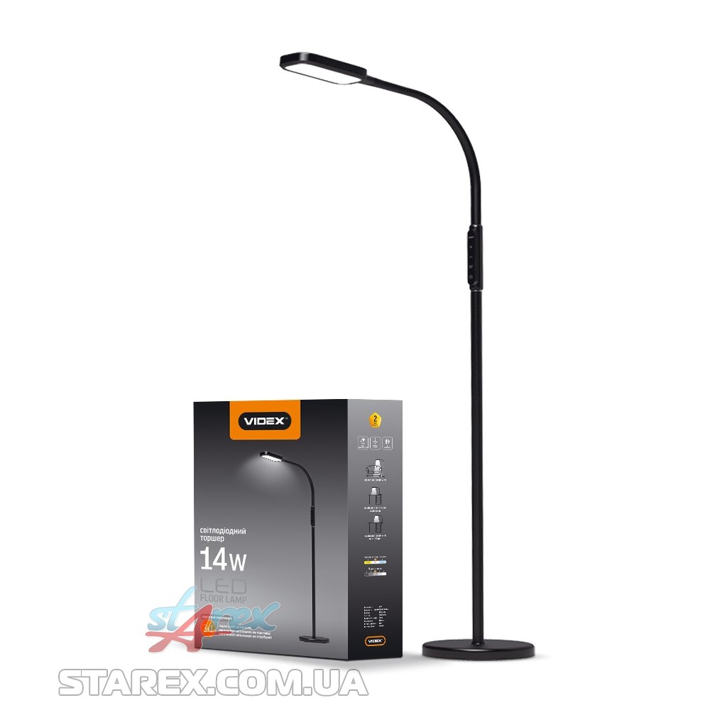 LED торшер VIDEX TF07B 14W 3000-5500K, черный