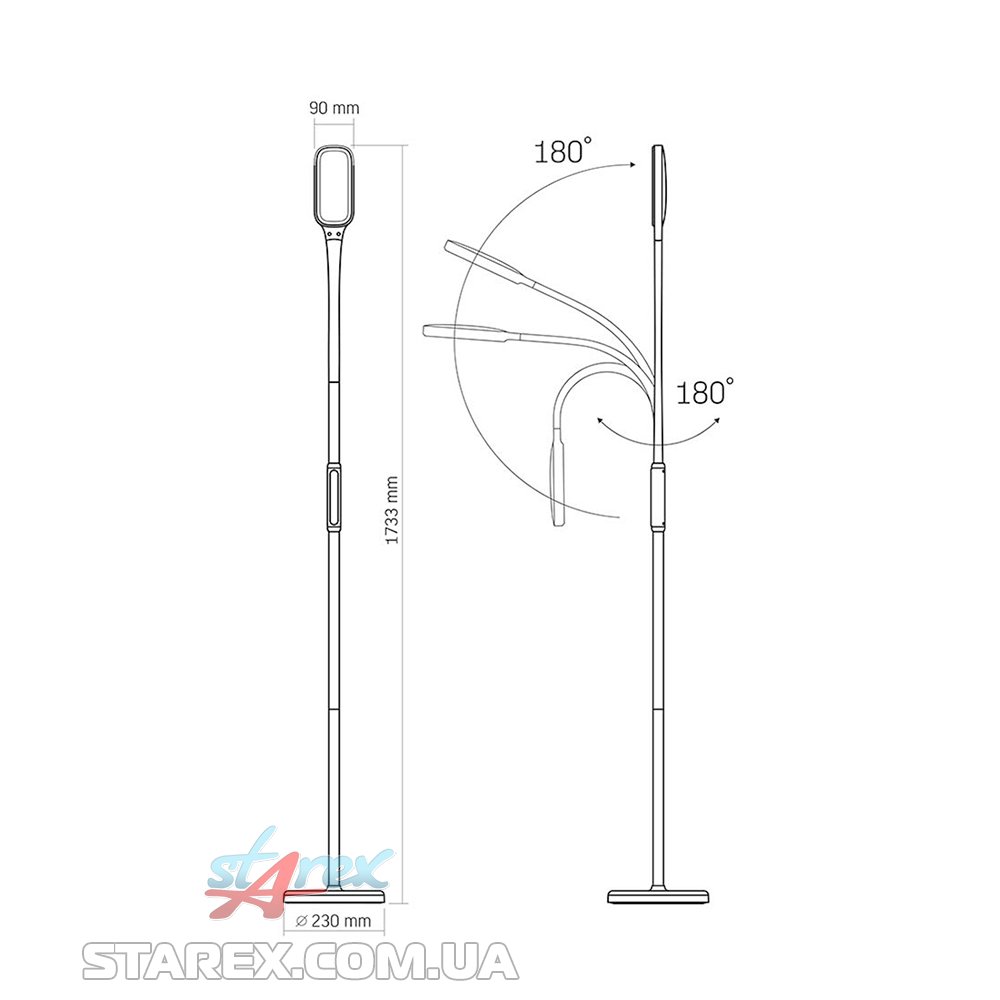 При помощи подвижного крепления вы легко сможете изменить угол освещения. Угол рассеивания света у данного торшера составляет 120 градусов. Гарнтировано равномерное распределение светового потока 740Лм при максимальной мощности. Эффективный и надежный светодиодный торшер будет служить долго, что подтверждается 2-х летней гарантией