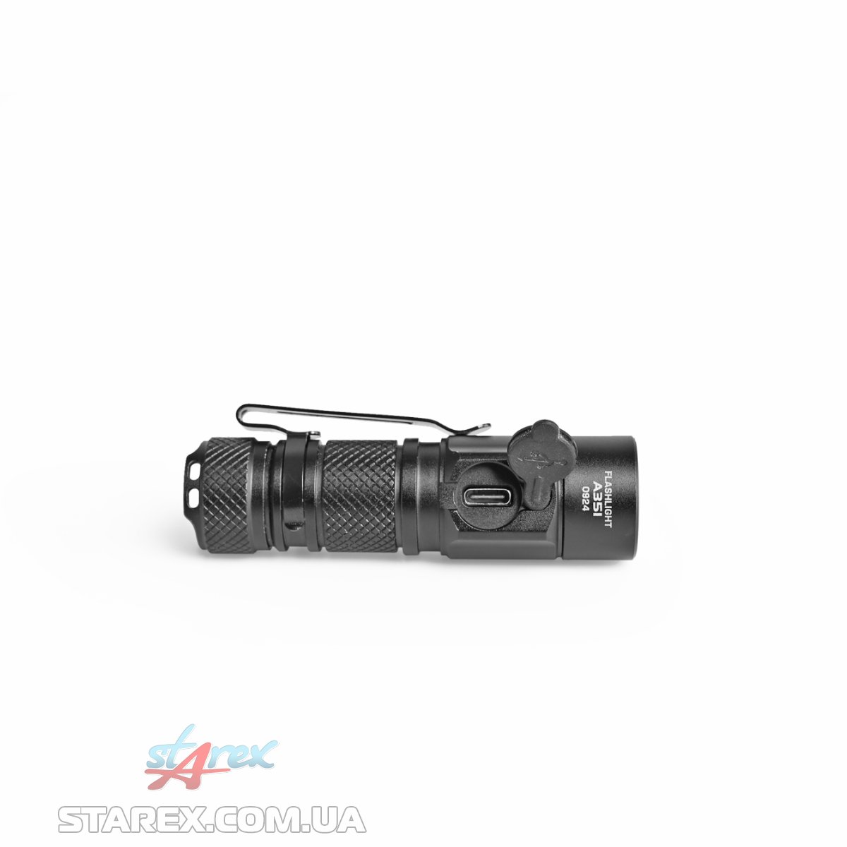 Доступне заряджання за допомогою кабелю USB-C. В якості елементів живлення використовуються акумулятори типу 16340.