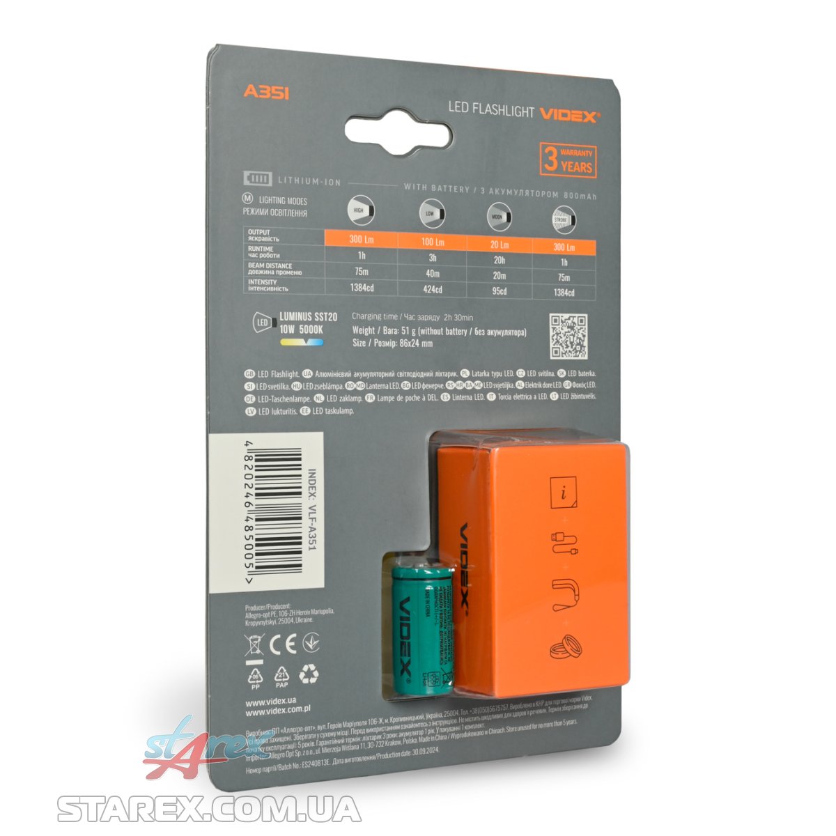 Портативний світлодіодний ліхтарик VIDEX VLF-A351 300Lm 5000K