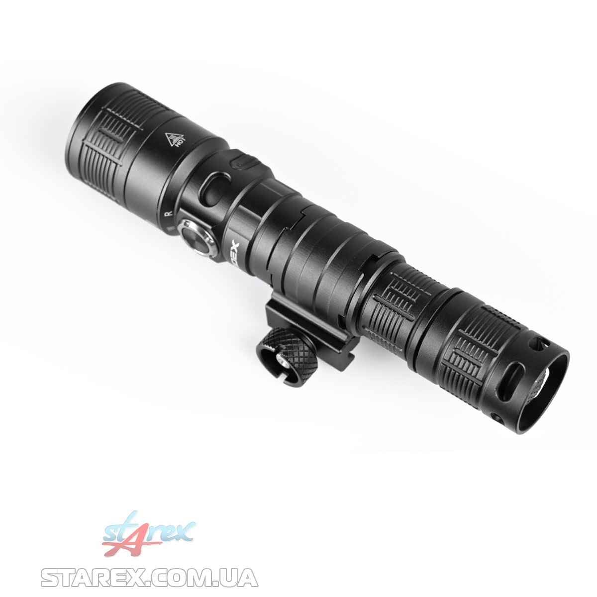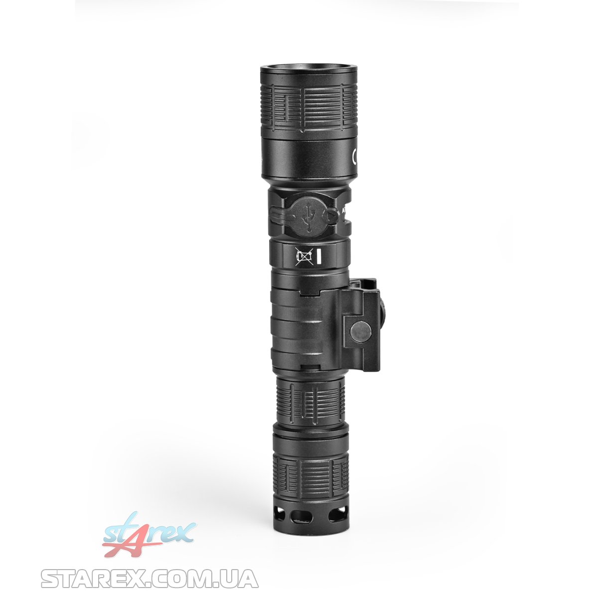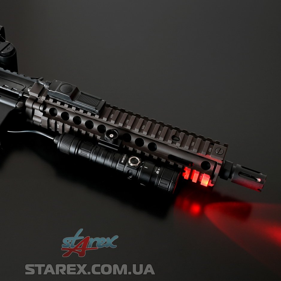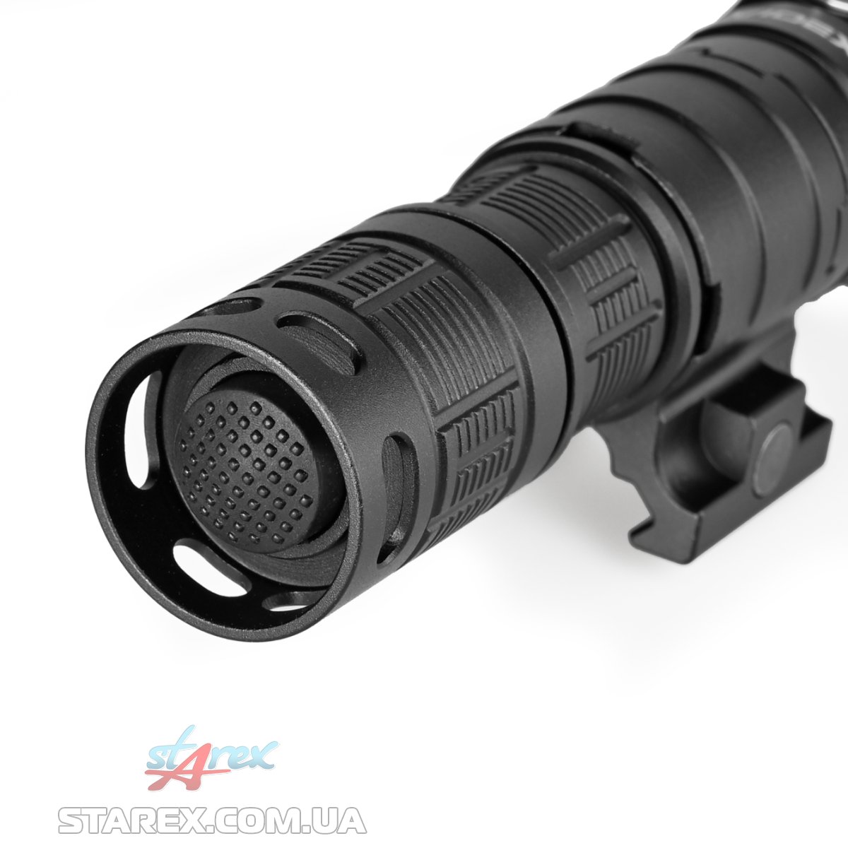 - Комплектація: Акумулятор, кліпса, кріплення на планку пікатінні, шнур на руку, зарядний кабель, запасна накладка на кнопку, запасні ущільнювачі, документація