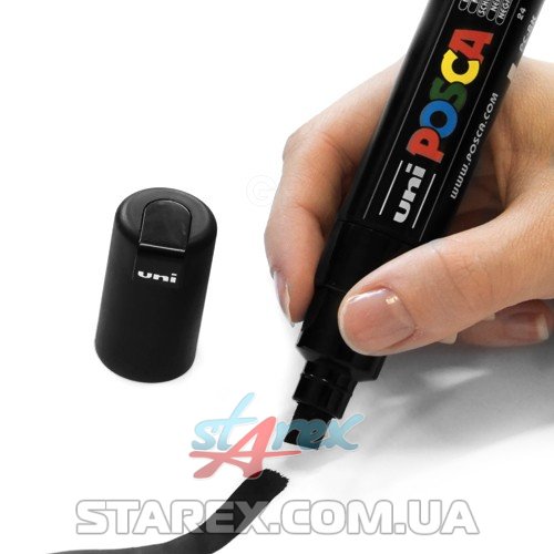 Маркер имеет стойкую формулу чернил, которая обеспечивает превосходную стойкость к выцветанию и водонепроницаемость. Краска на пористых поверхностях держится без необходимости использования закрепителей. Скошенный наконечник подходит для работы на больших поверхностях, как в помещениях, так и на открытом воздухе. Пока чернила маркера не высохли, разные цвета можно смешивать для получения необходимых оттенков. После высыхания чернила приобретают свойства непрозрачного наложения одного цвета на другой. Подходит для использования на бумаге, картоне, дереве, ткани, стекле, пластике и многих других поверхностях. Металлический шарик внутри позволяет хорошо взбалтывать краски для равномерной подачи