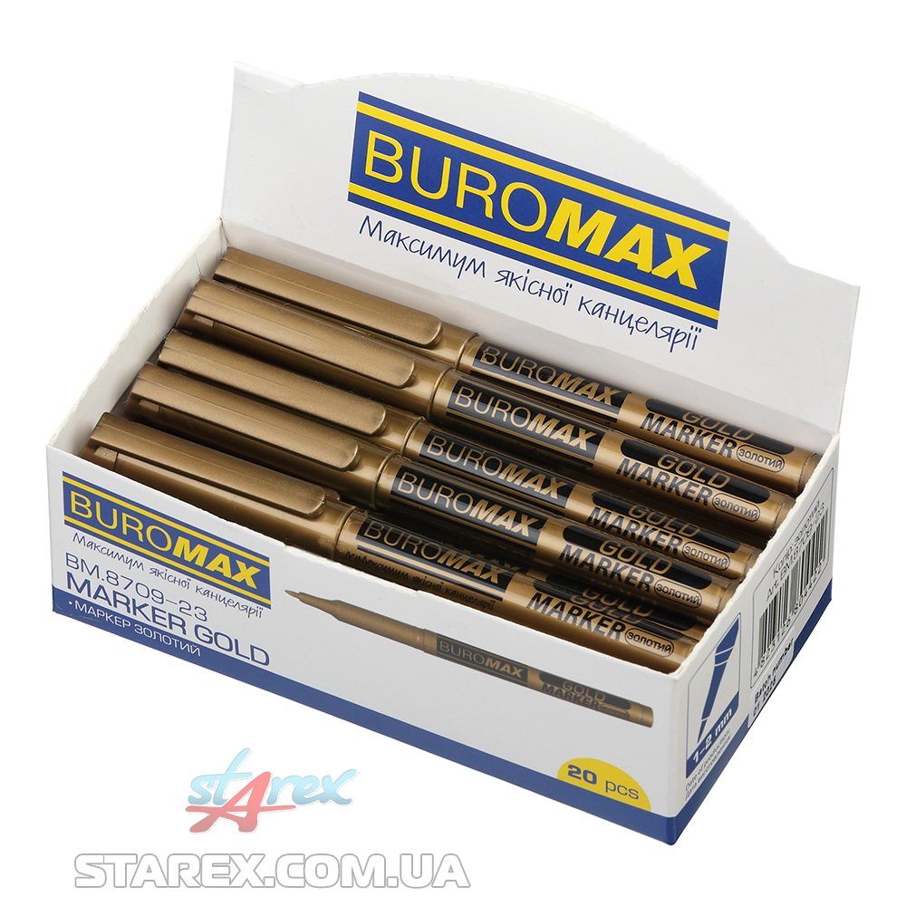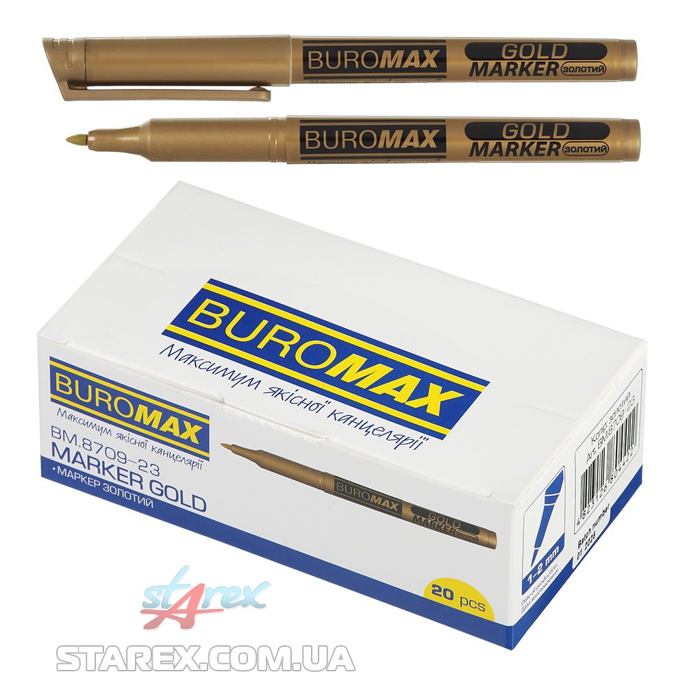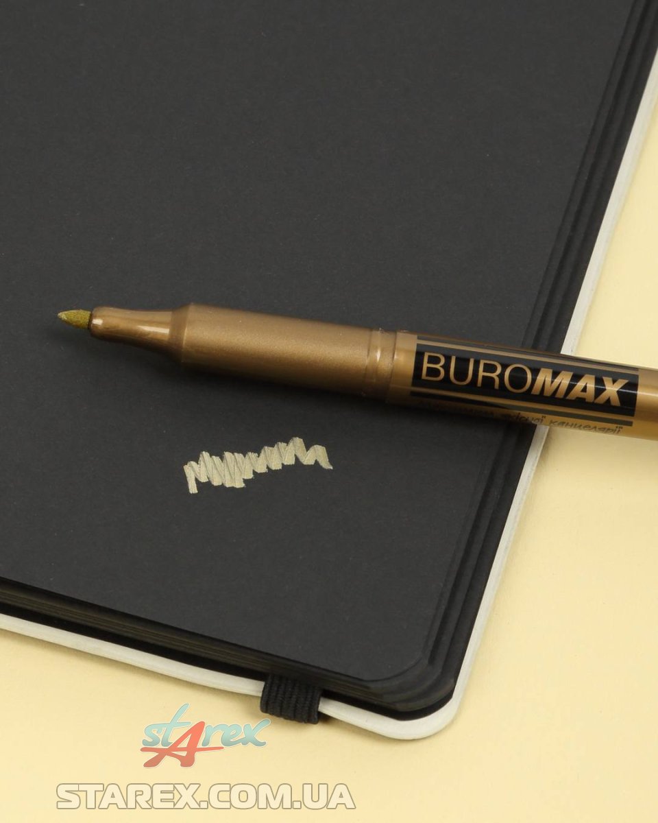 Золотой маркер BUROMAX - предназначен для нанесения надписей и письма на разных поверхностях: бумага, картон, дерево, резина, керамика, пластик, стекло, металл, кожа и т.д. Подходит для декоративных и отделочных работ, как профессионалам, так и любителям и новичкам. Может применяться для дизайнерской росписи, подписи альбомов, открыток, поделок, рисования и раскрашивания.