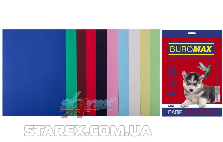 Набор цветной бумаги А4, 80г/м2, DARK+PASTEL, 10 цветов, 50л/уп