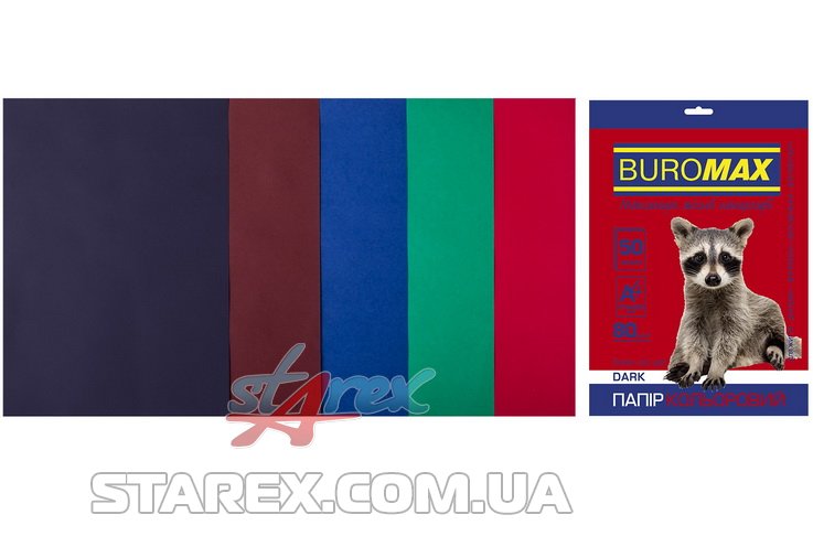 Набор цветной бумаги А4, 80г/м2, DARK, 5 цветов, 50л/уп
