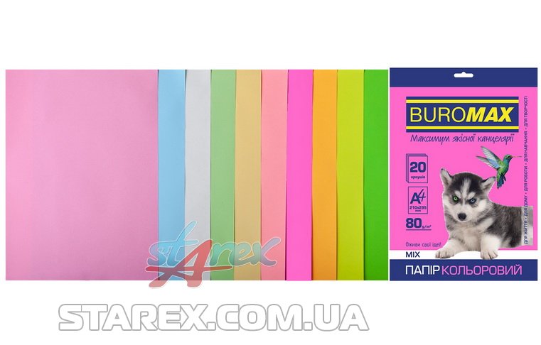 Набор цветной бумаги А4, 80г/м2, PASTEL+NEON, 10 цветов, 20л/уп
