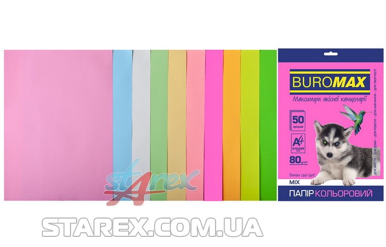 Набор цветной бумаги А4, 80г/м2, PASTEL+NEON, 10 цветов, 50л/уп
