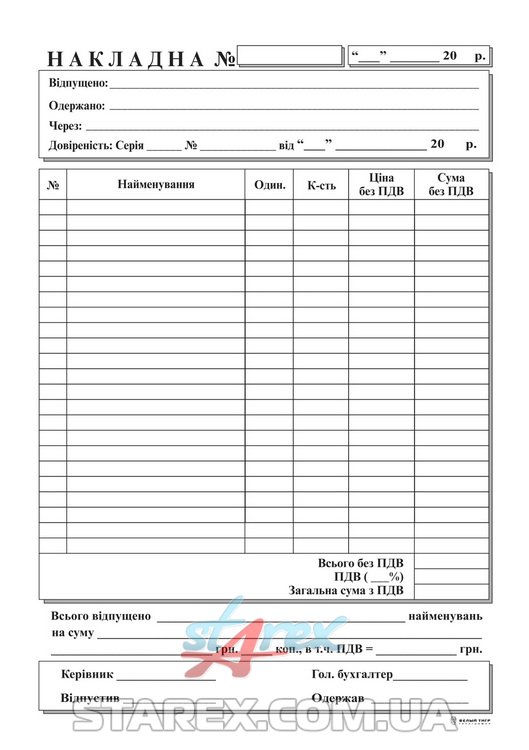 Накладная А5, офсет
