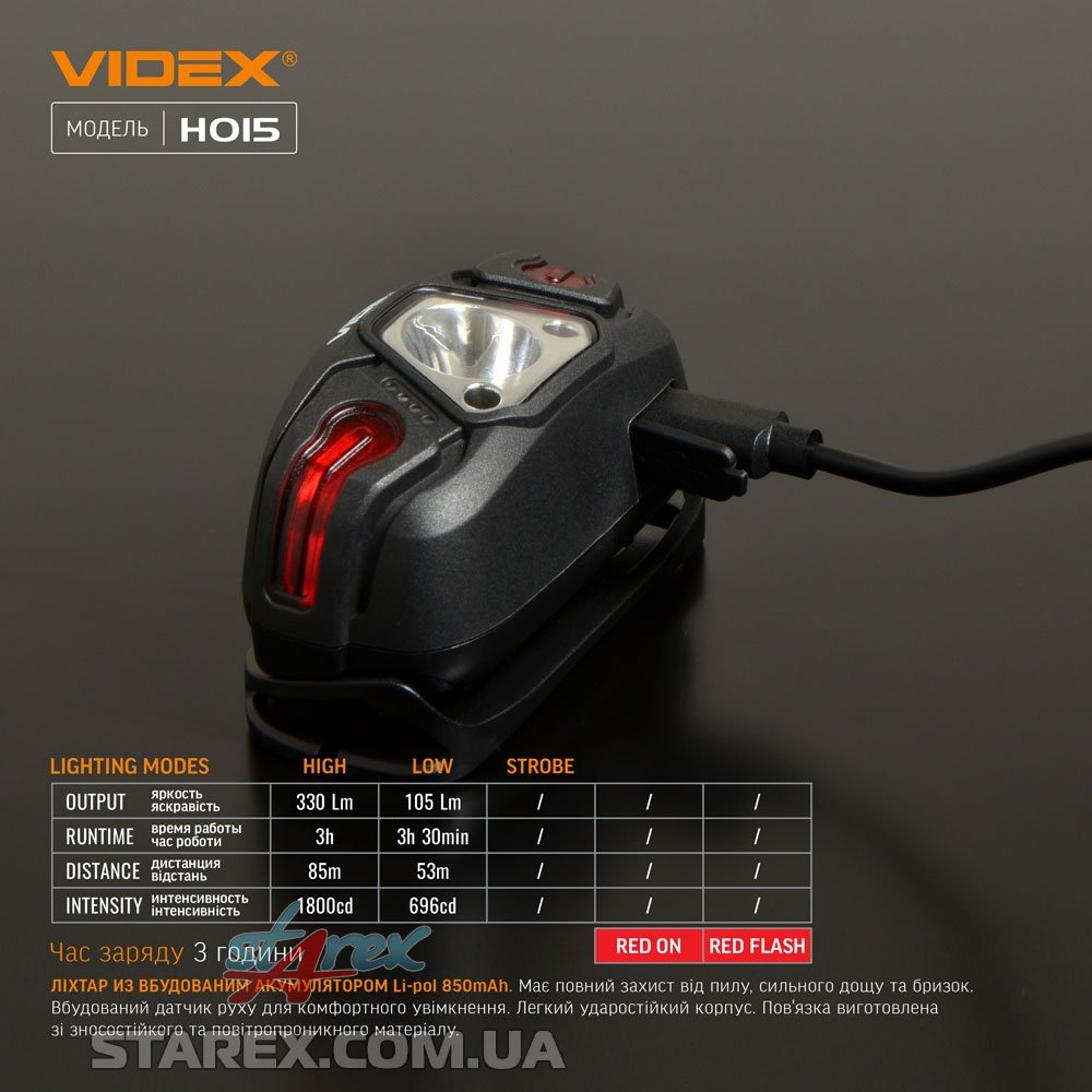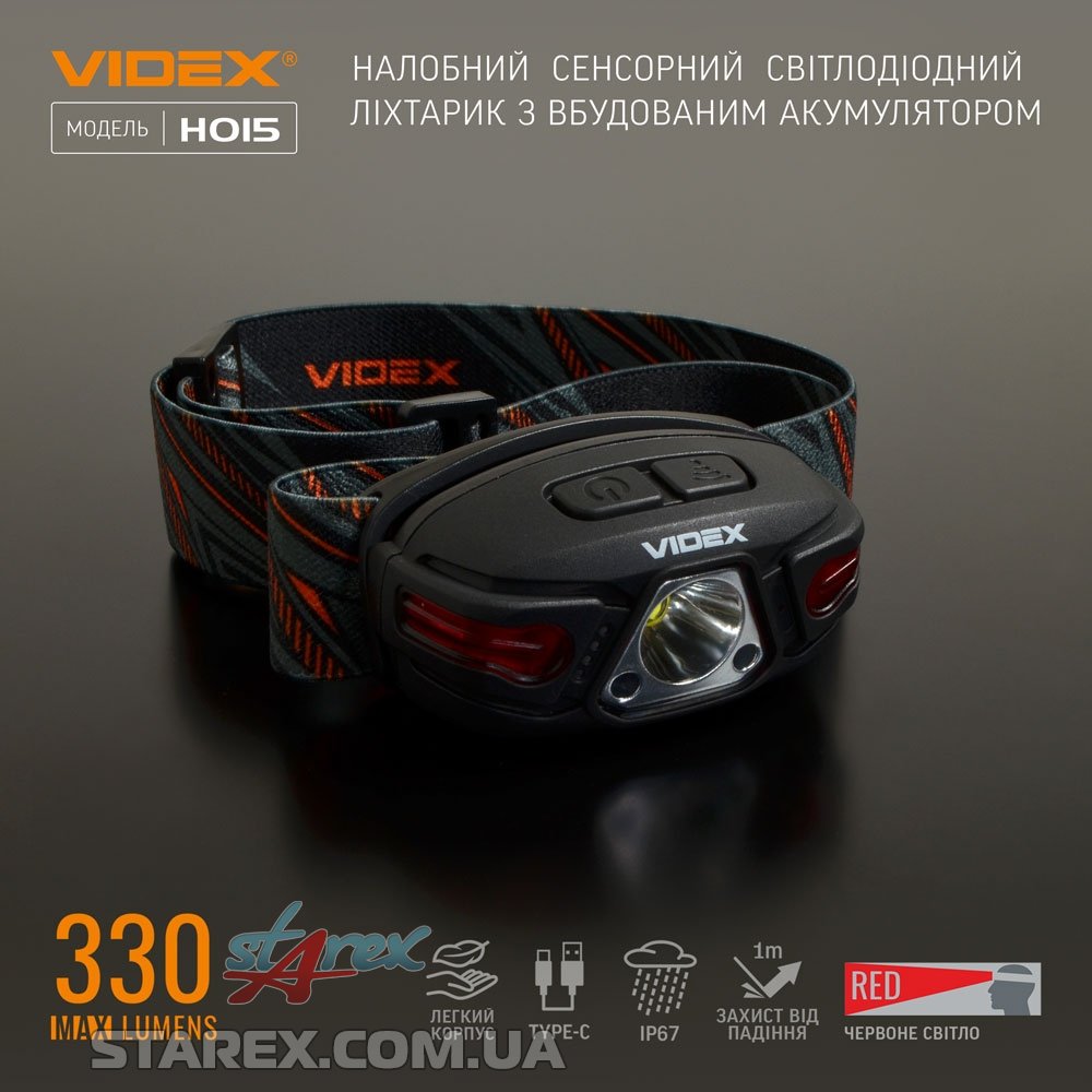 Налобный светодиодный фонарик VIDEX H015 330Lm 5000K