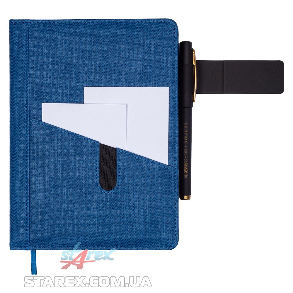 Жесткая обложка ежедневника GALAXY выполнена из искусственной кожи с приятной на ощупь фактурой ткани. Эта модель ежедневника отличается своей мульти функциональностью. Благодаря магнитной застежке, ежедневник можно легко и быстро зафиксировать в закрытом положении. Глубокий скошенный карман на лицевой стороне обложки позволяет разместить визитные карточки, записки и даже мобильный телефон. Петелька-резинка для ручки под магнитной застежкой обеспечит постоянное наличие пишущих принадлежностей. Дизайн гармонично дополняют декоративные швы и тонированный срез внутреннего блока