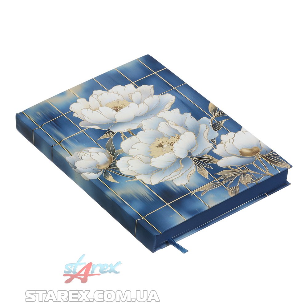 Жесткая полиграфическая обложка ежедневника PEONY выполнена в ярком цветочном дизайне. Гармонично дополняет и придает завершенности дизайну тонированный в цвет обложки срез внутреннего блока