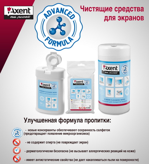 ТМ AXENTпредставляет обновленную серию чистящих средств для экранов!
