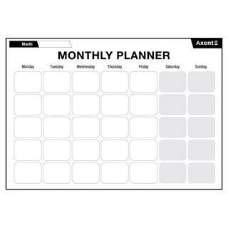 - Настенный планер на месяц имеет удобную разметку. Каждому дню уделена отдельная ячейка. Такая линовка является универсальной и подходит для любого месяца и года. Наступило первое число? Вытирайте предыдущий месяц и расписывайте актуальный. Этот формат имеет множество преимуществ, таких как визуальный охват целого месяца, возможность быстро оценить свою нагрузку и равномерно ее распределять.