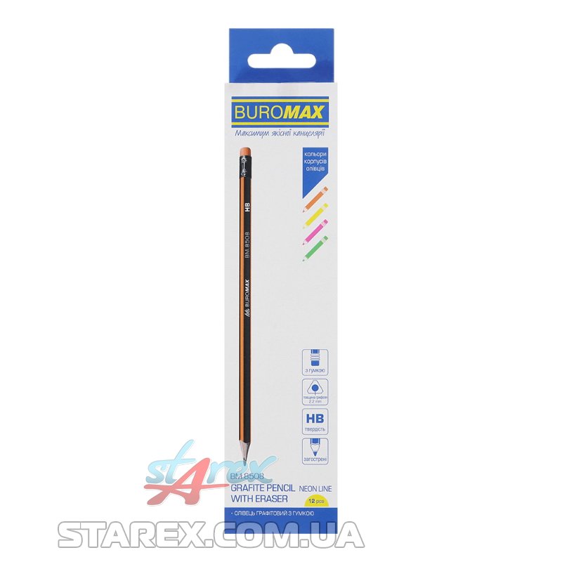 Классический графитовый карандаш BUROMAX - прекрасное решение для офиса, школы и дома! Идеально подходит для письма, черчения, и рисования!