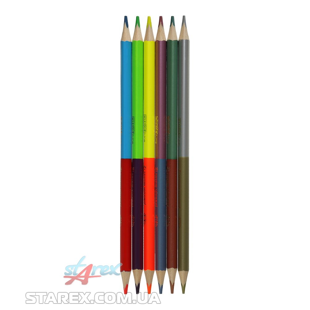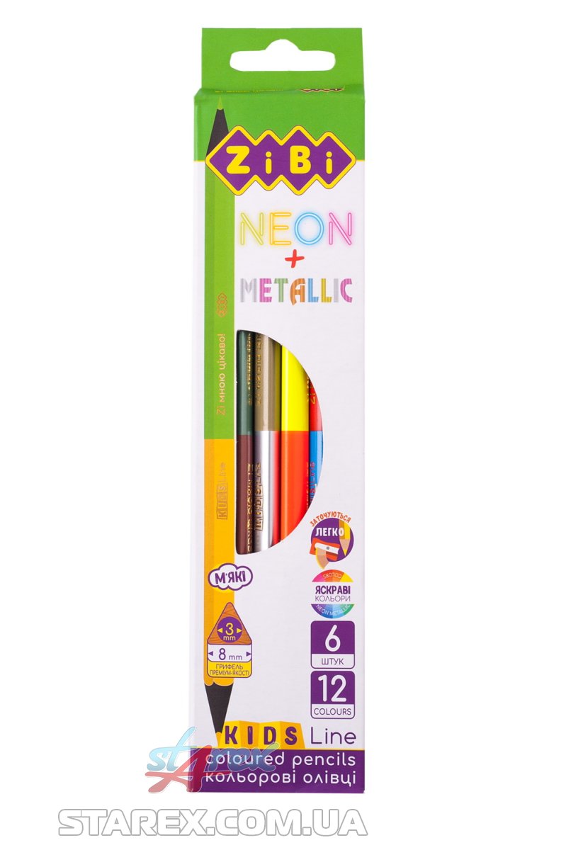 Карандаши цветные двухсторонние NEON+METALLIC, 6 шт/12 цветов, KIDS LINE