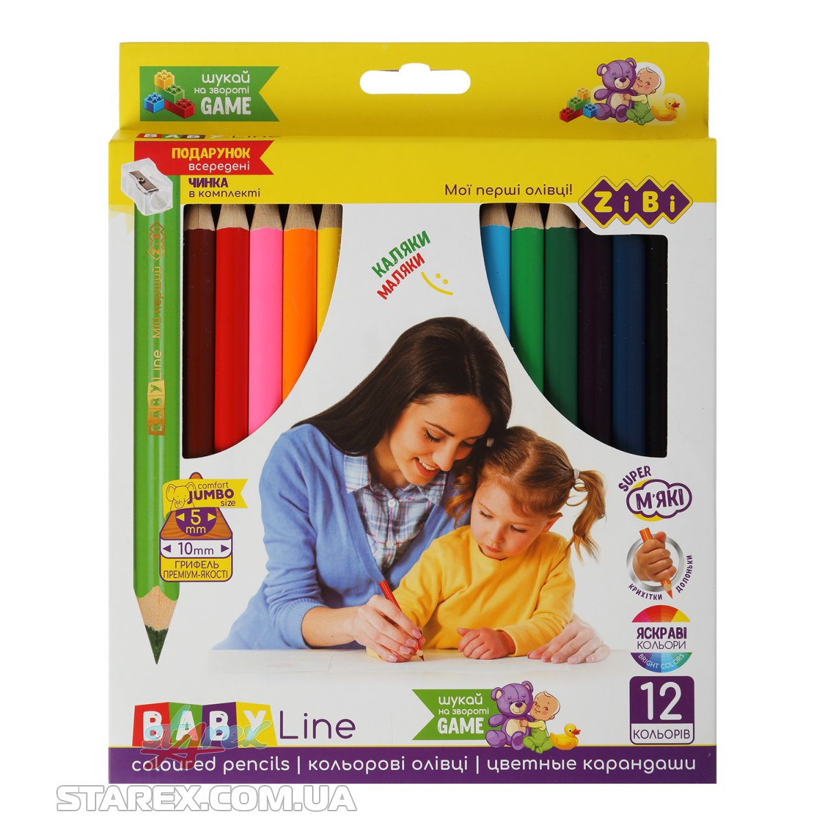 Карандаши цветные JUMBO, с точилкой, 12 цветов, BABY Line