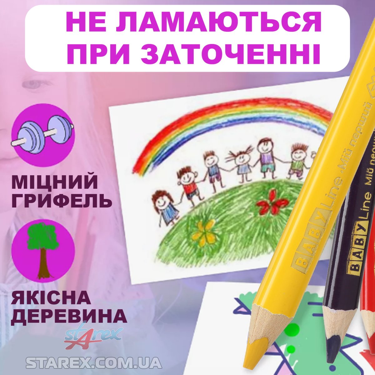 - Корпус укороченной длины - для безопасного и удобного использования детками (легко манипулировать, предотвращает попадание карандаша в глаза)