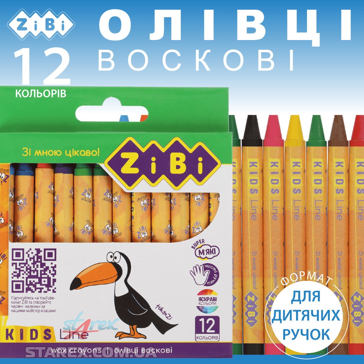Карандаши восковые, 12 цветов, KIDS Line