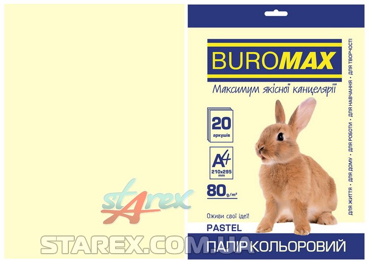 Бумага цветная А4, 80г/м2, PASTEL, кремовый, 20л/уп
