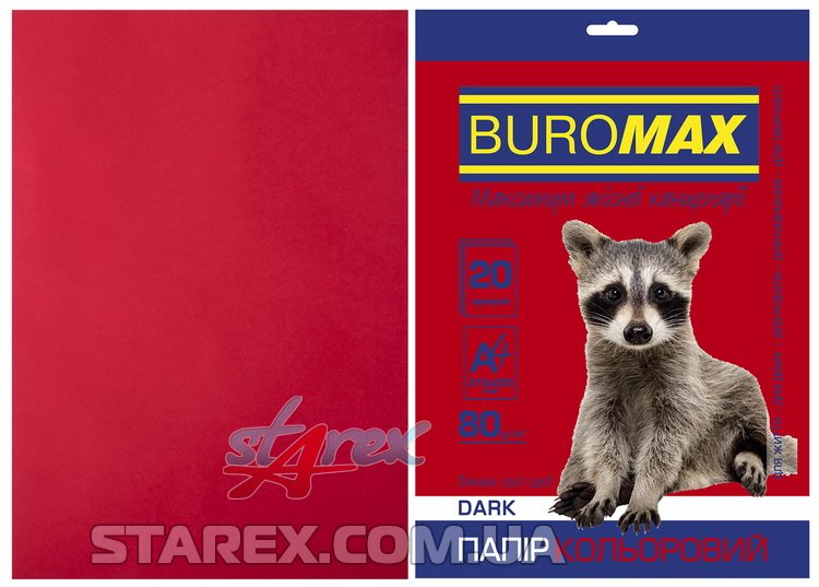 Бумага цветная А4, 80г/м2, DARK, бордовый, 20л/уп