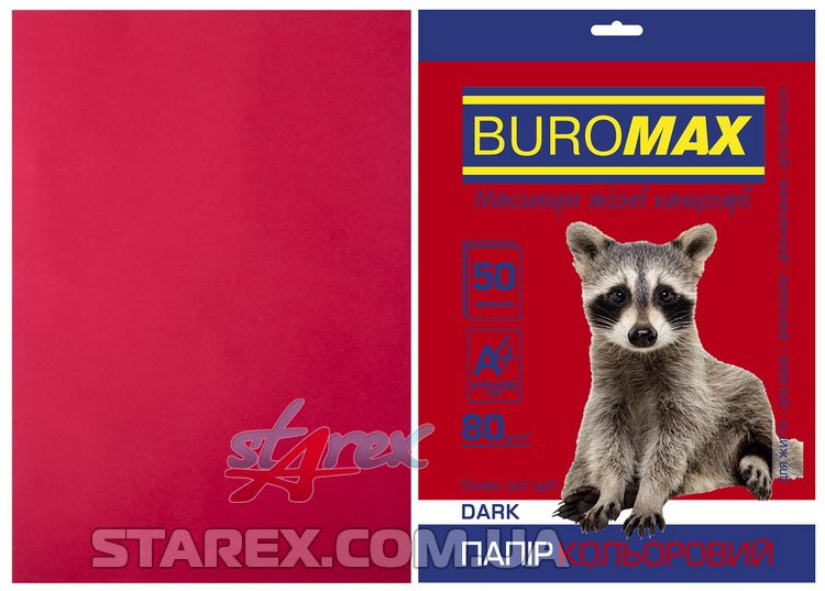 Бумага цветная А4, 80г/м2, DARK, бордовый, 50л/уп