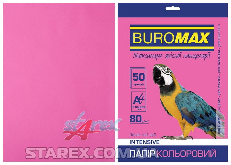 Бумага цветная А4, 80г/м2, INTENSIV, малиновый, 50л/уп