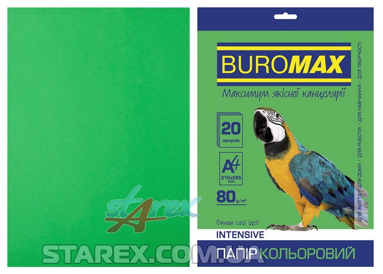 Бумага цветная А4, 80г/м2, INTENSIV, зеленый, 20л/уп