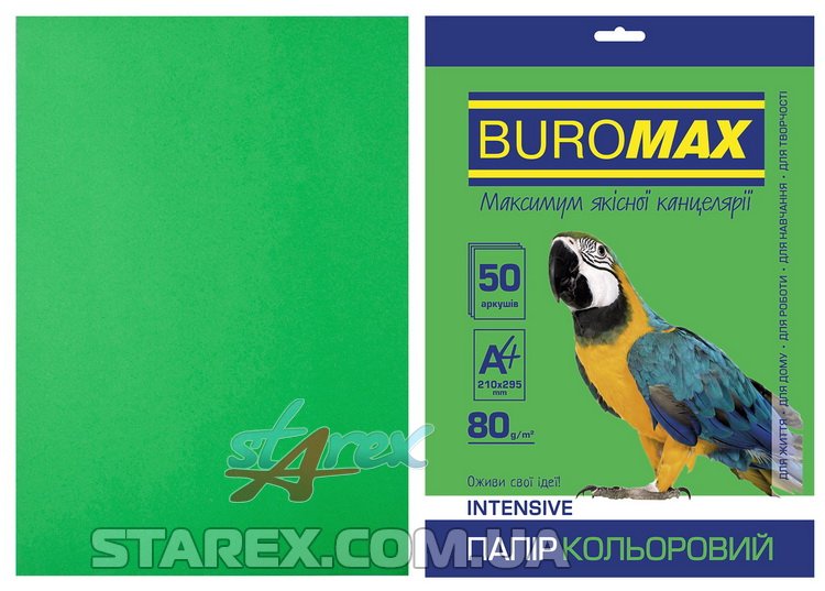 Бумага цветная А4, 80г/м2, INTENSIV, зеленый, 50л/уп