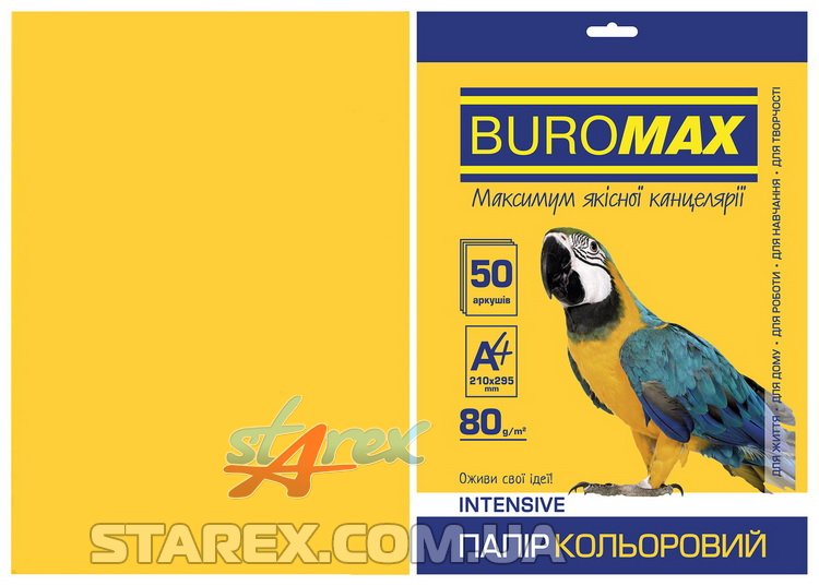 Бумага цветная А4, 80г/м2, INTENSIV, желтый, 50л/уп