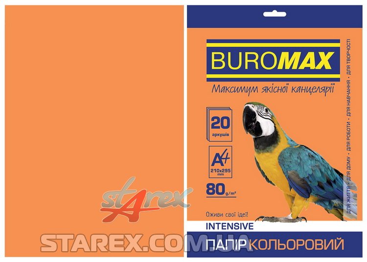 Бумага цветная А4, 80г/м2, INTENSIV, оранжевый, 20л/уп