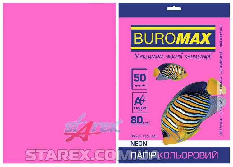 Бумага цветная А4, 80г/м2, NEON, малиновый, 50л/уп