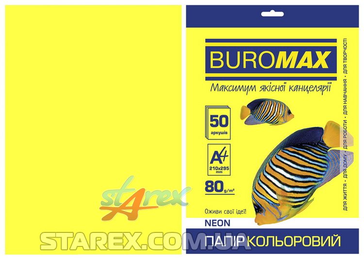 Бумага цветная А4, 80г/м2, NEON, желтый, 50л/уп