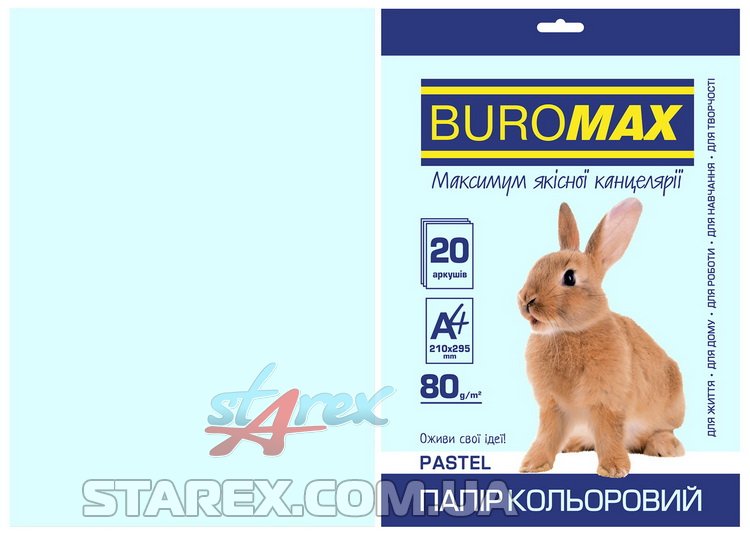 Бумага цветная А4, 80г/м2, PASTEL, голубой, 20л/уп