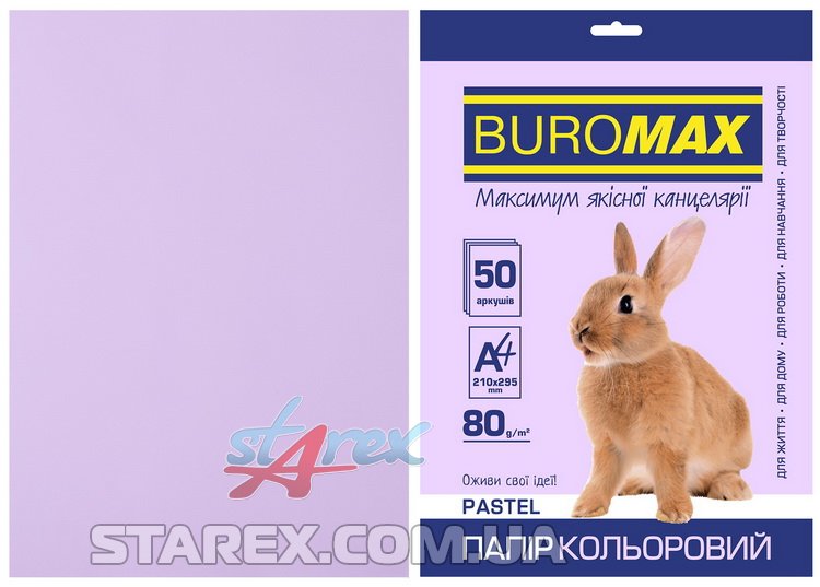 Бумага цветная А4, 80г/м2, PASTEL, лавандовый, 50л/уп