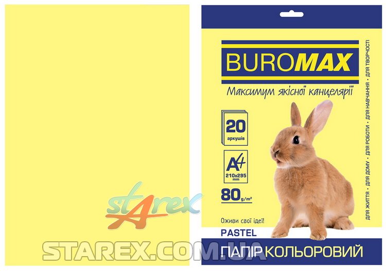 Бумага цветная А4, 80г/м2, PASTEL, желтый, 20л/уп