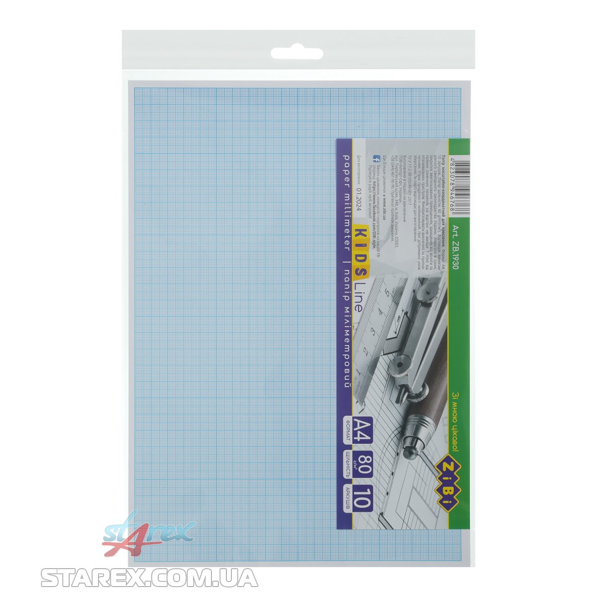 Бумага миллиметровая А4 80г/м2, голубая 10 листов