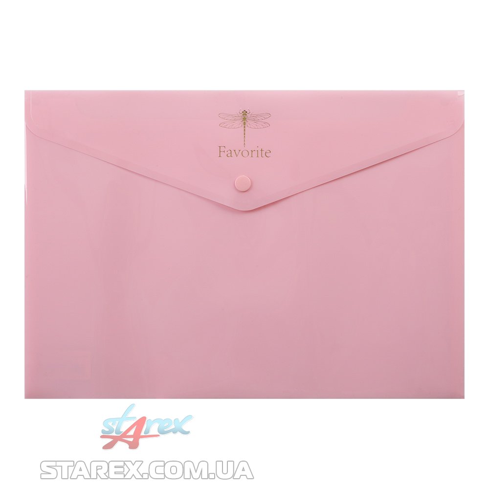Папка-конверт на кнопке формат А4 PASTEL, розовый