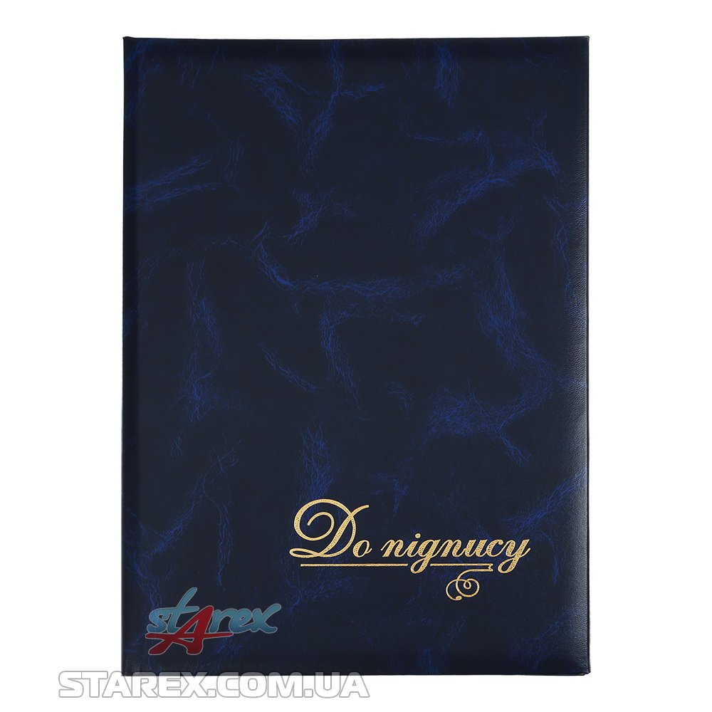 Папка предназначена для подачи документов на подпись руководителю, выступлений на официальных государственных мероприятиях, презентациях и т.п. Оформлена декоративным нанесением надписи "До підпису" золотым цветом на передней стороне.