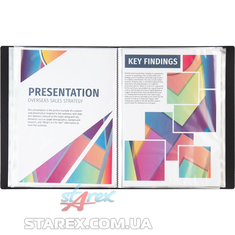 Папки с файлами - это превосходное решение для работы, учебы и организации личных архивов, подборок. Помещая документы по определенной теме или проекту в отдельную дисплей-книгу, можно не только решить вопрос удобной систематизации и хранения документов, но и при необходимости брать с собой и презентовать их, просто листая файлы в дисплей-книге. Не нужно отдельно покупать файлы и папки, достаточно выбрать дисплей-книгу с оптимальным количеством файлов. Дисплей-книги Axent изготовлены из первичного полипропилена, плотность пластика и файлов предусматривает их износостойкость и сохранение презентабельного вида в процессе использования. Файлы надежно впаяны в обложку. Цвет обложки совпадает с корешком, благодаря чему дисплей-книги отличаются на полке, легко найти нужную по цвету корешка