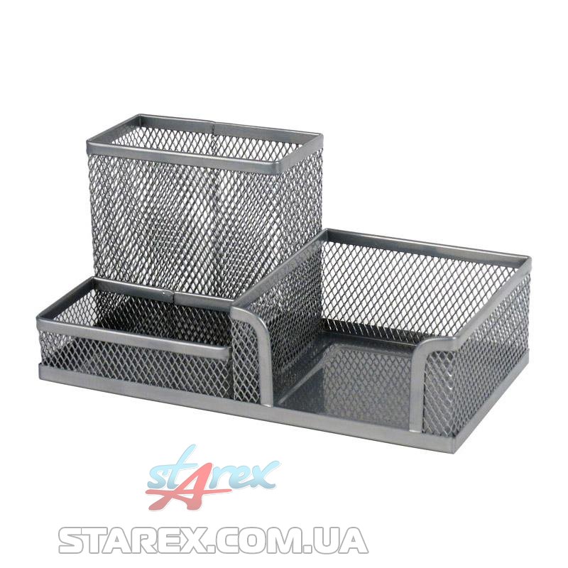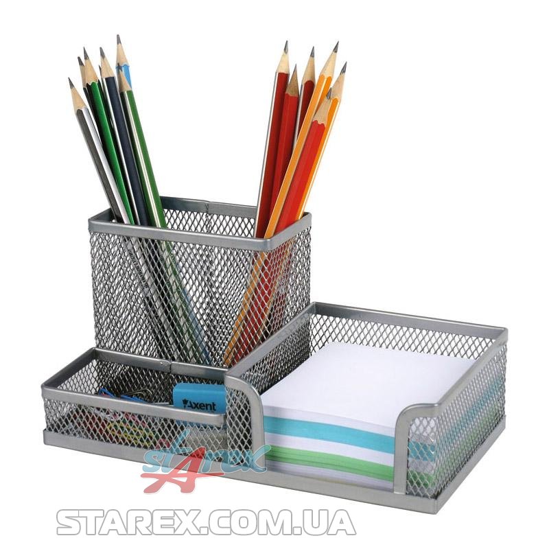 Подставка-органайзер Axent поможет поддерживать порядок на рабочем столе. Позволяет эстетично и удобно разместить бумажные блоки и канцелярские принадлежности. Состоит из 3-х отделений. Органайзер из металлической сетки органично смотрится на любом рабочем столе. Прочный материал, качественная окраска и обработка краев, цельнометаллическое дно обеспечивают аккуратный внешний вид в течение долгого времени